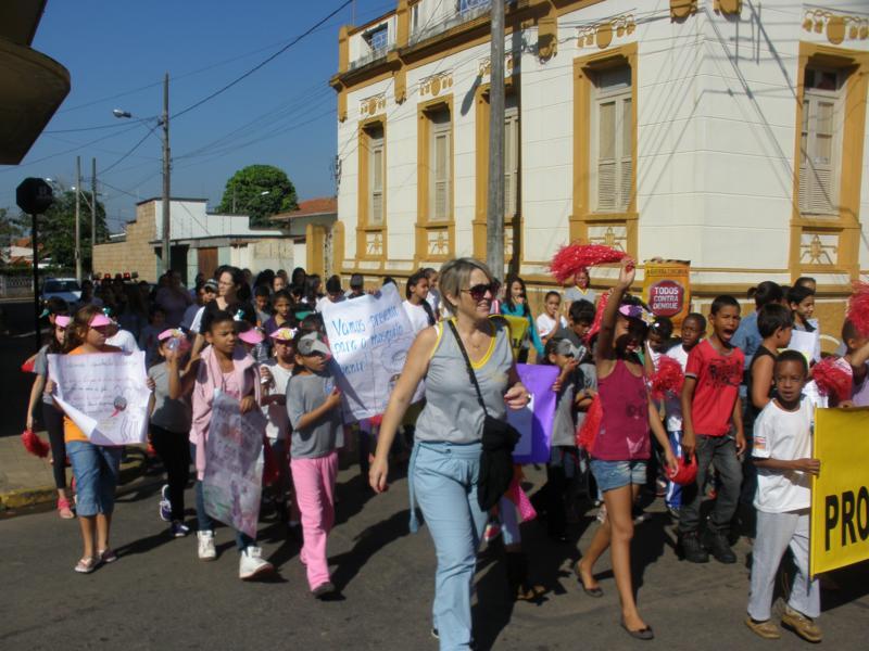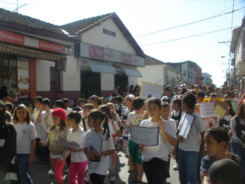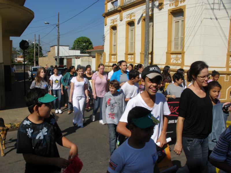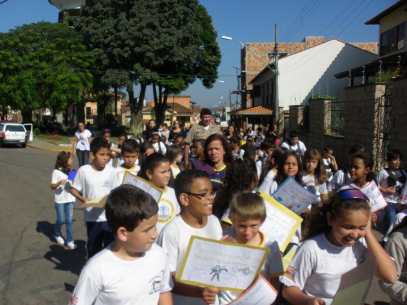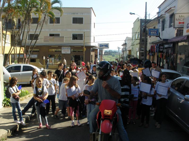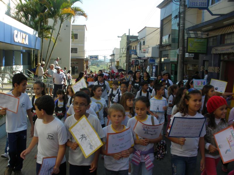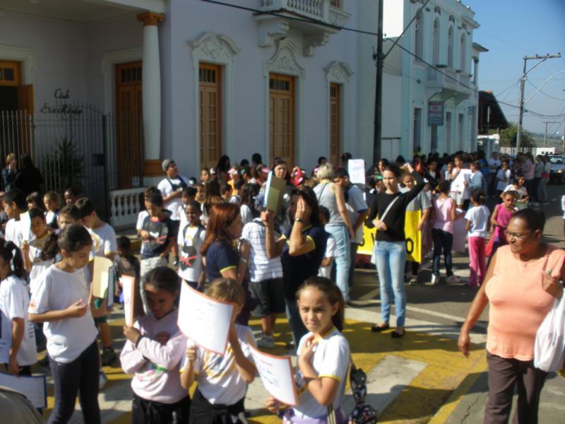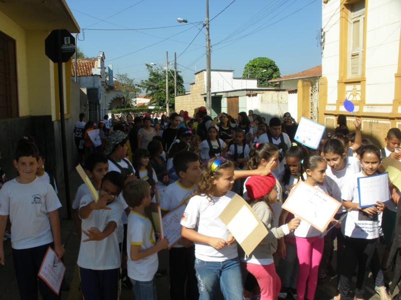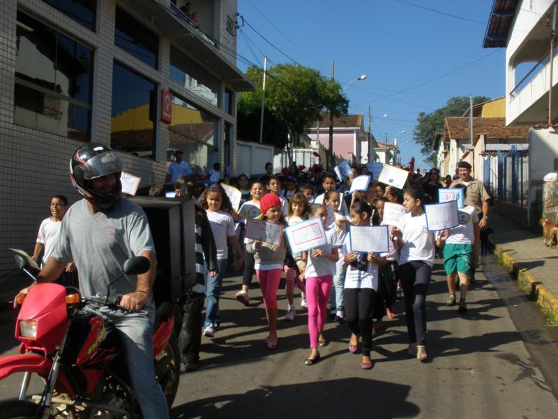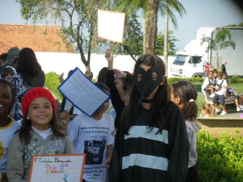 As crianças por onde passavam levaram várias mensagens escritas em cartazes para os comerciantes e a população de conscientização.
