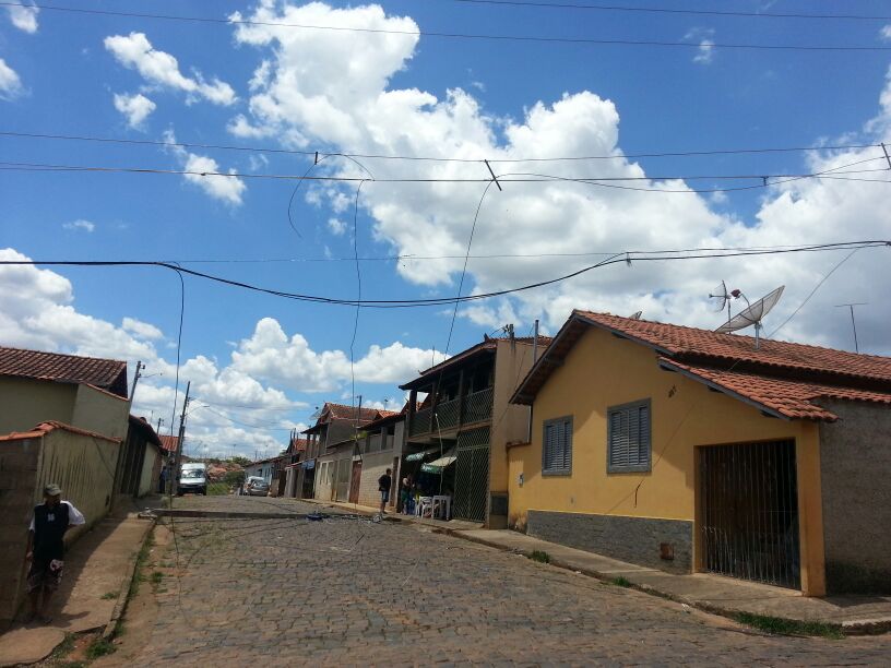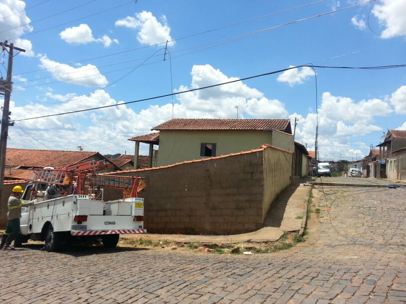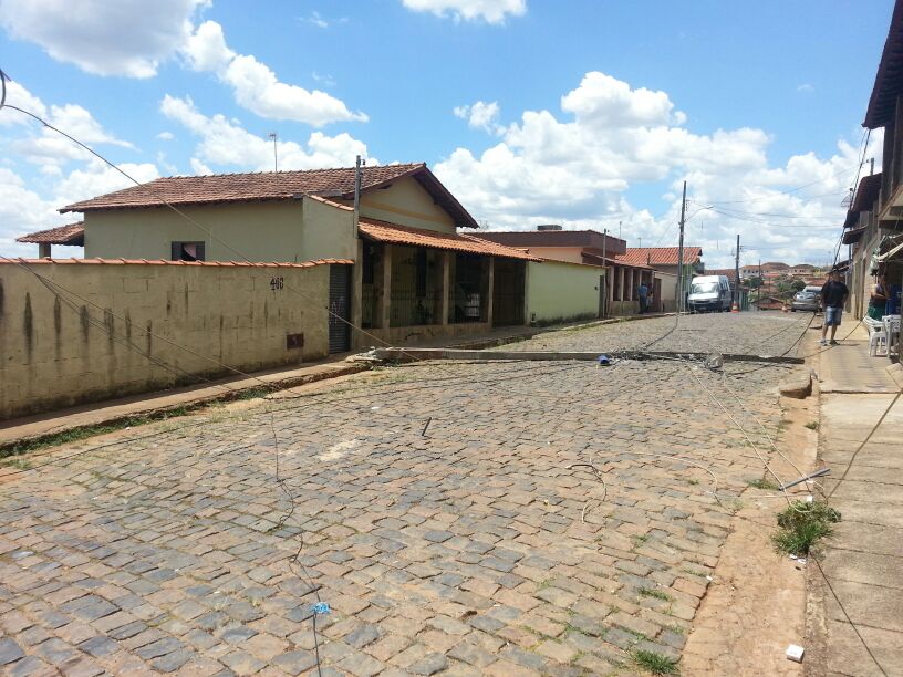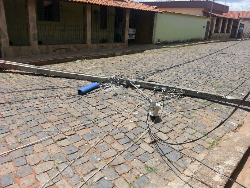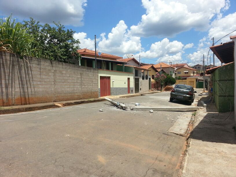 Uma equipe da CEMIG está no local a fim de restabelecer a energia no bairro. Por pouco um dos postes não atingiu um veículo que estava estacionado na rua.