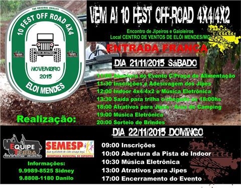 O 10º Festa Off Road 4x4 será nos dias 21 e 22 de novembro na…