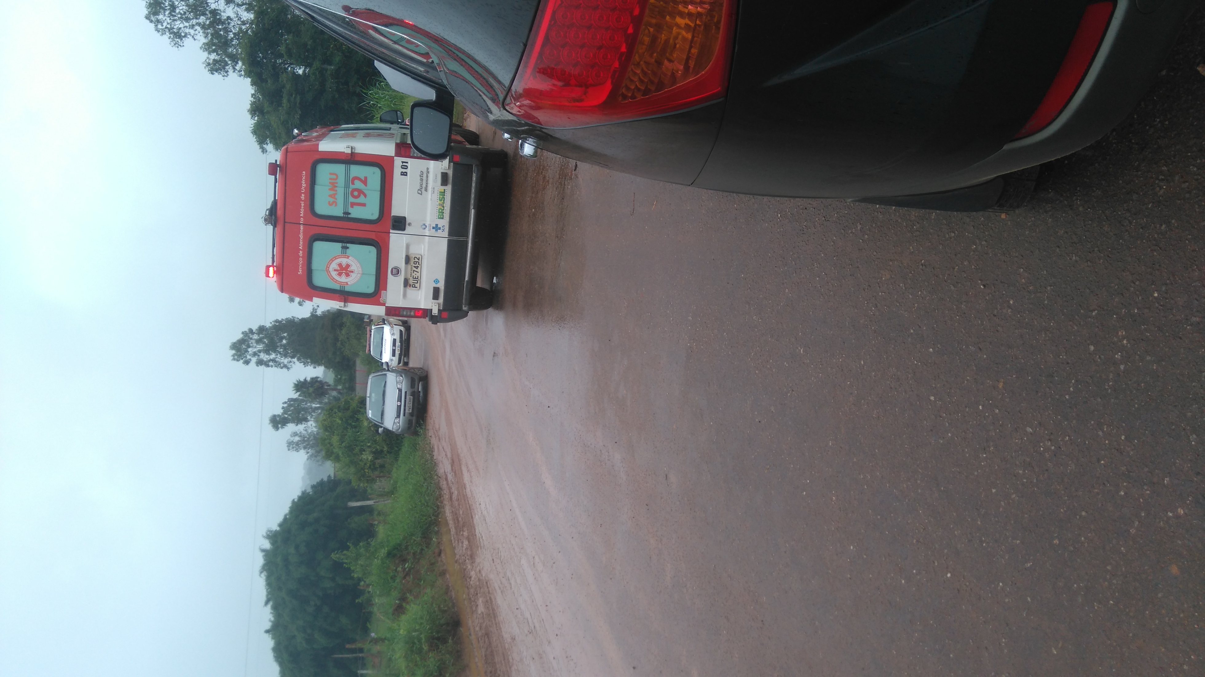 Viaturas do SAMU e Corpo de Bombeiros estão em resgate de vítimas de um acidente…