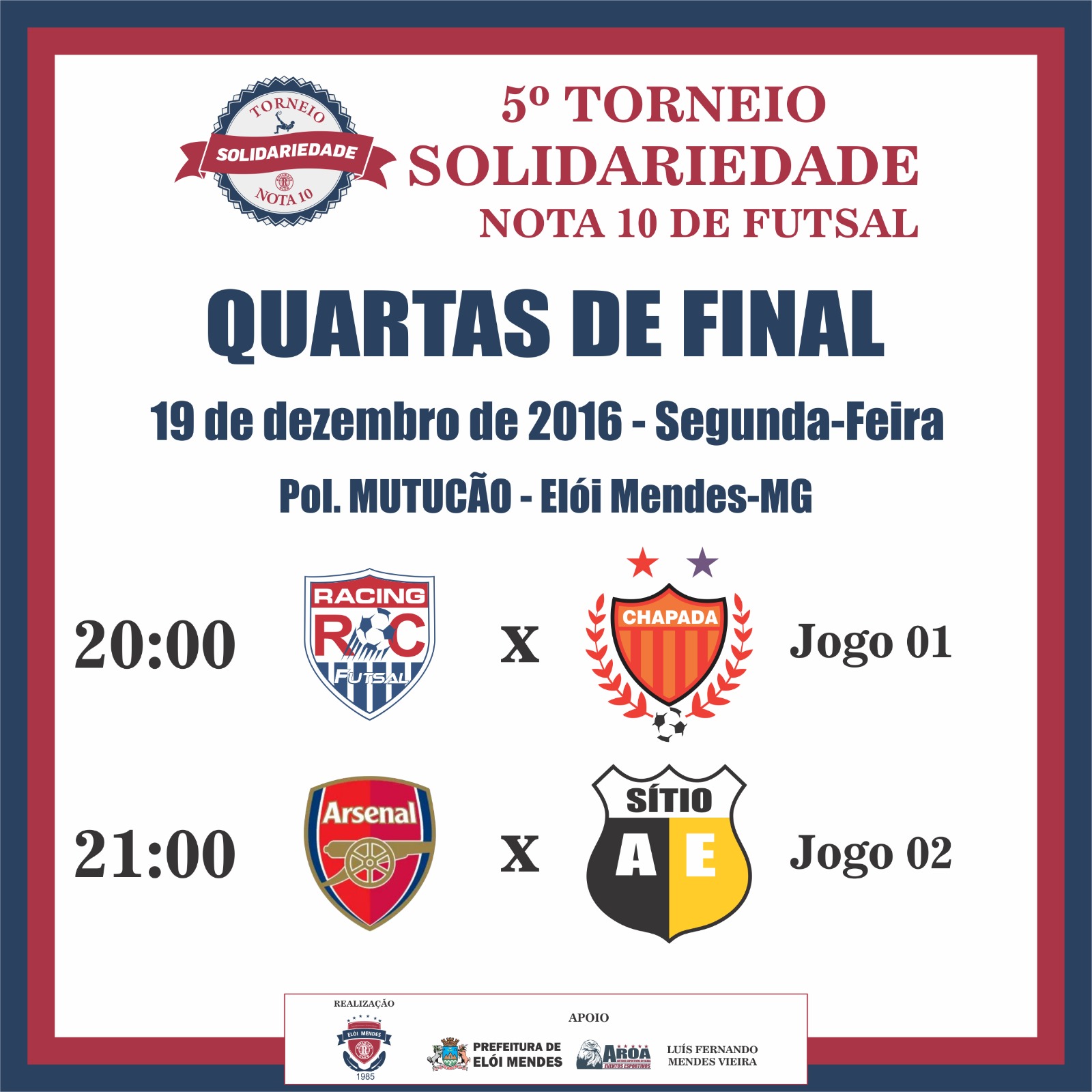 Quartas de final do Torneio Solidariedade acontecerá hoje (19/12) no Poliesportivo Mutução